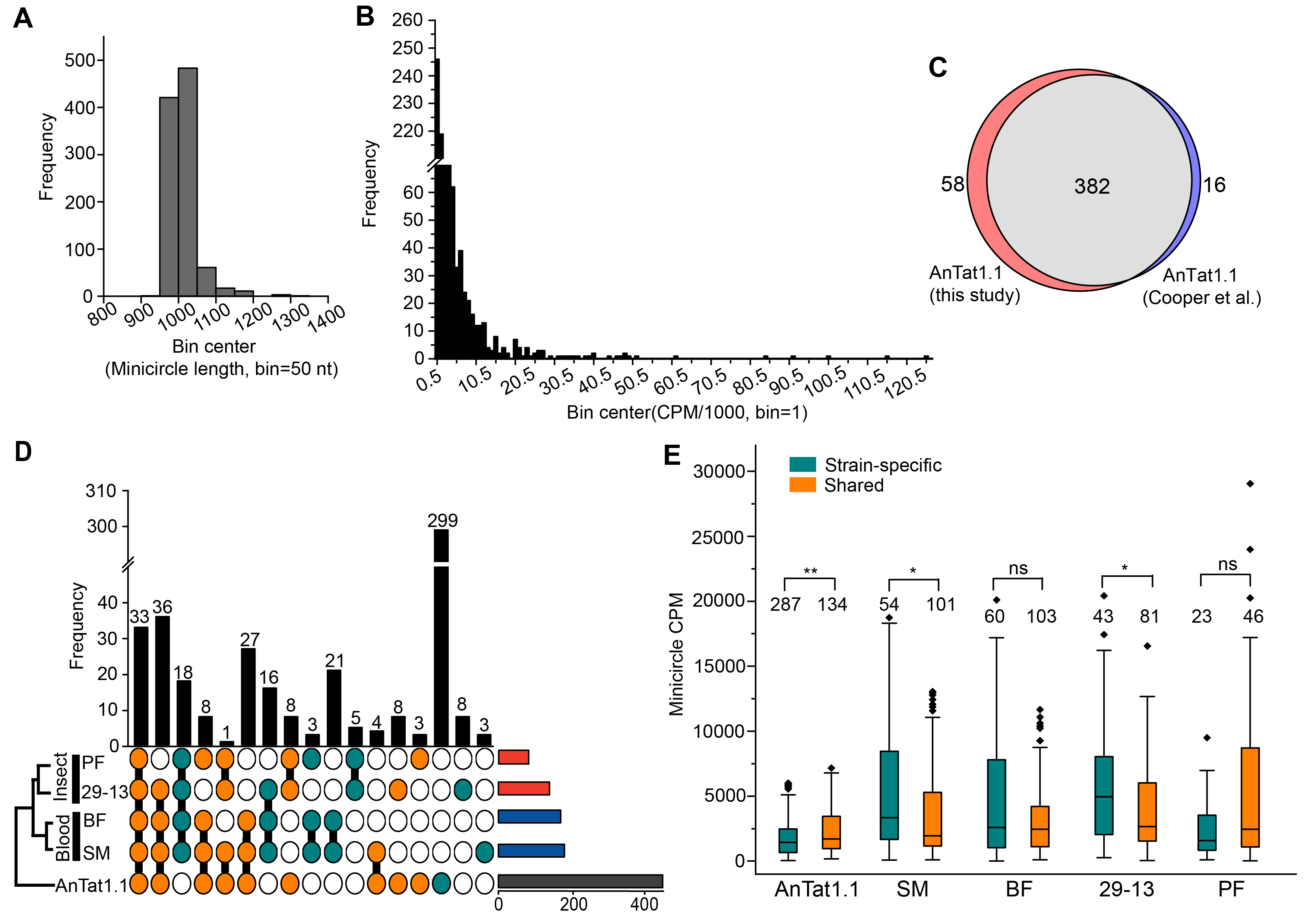 图2.布氏锥虫不同细胞系小环基因组的特征
